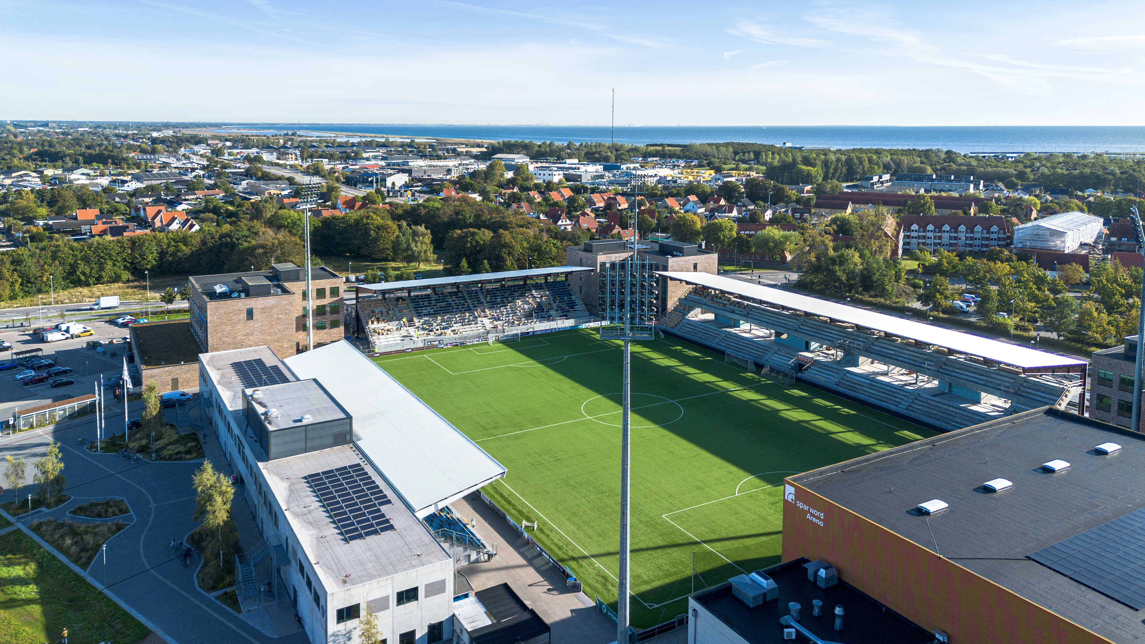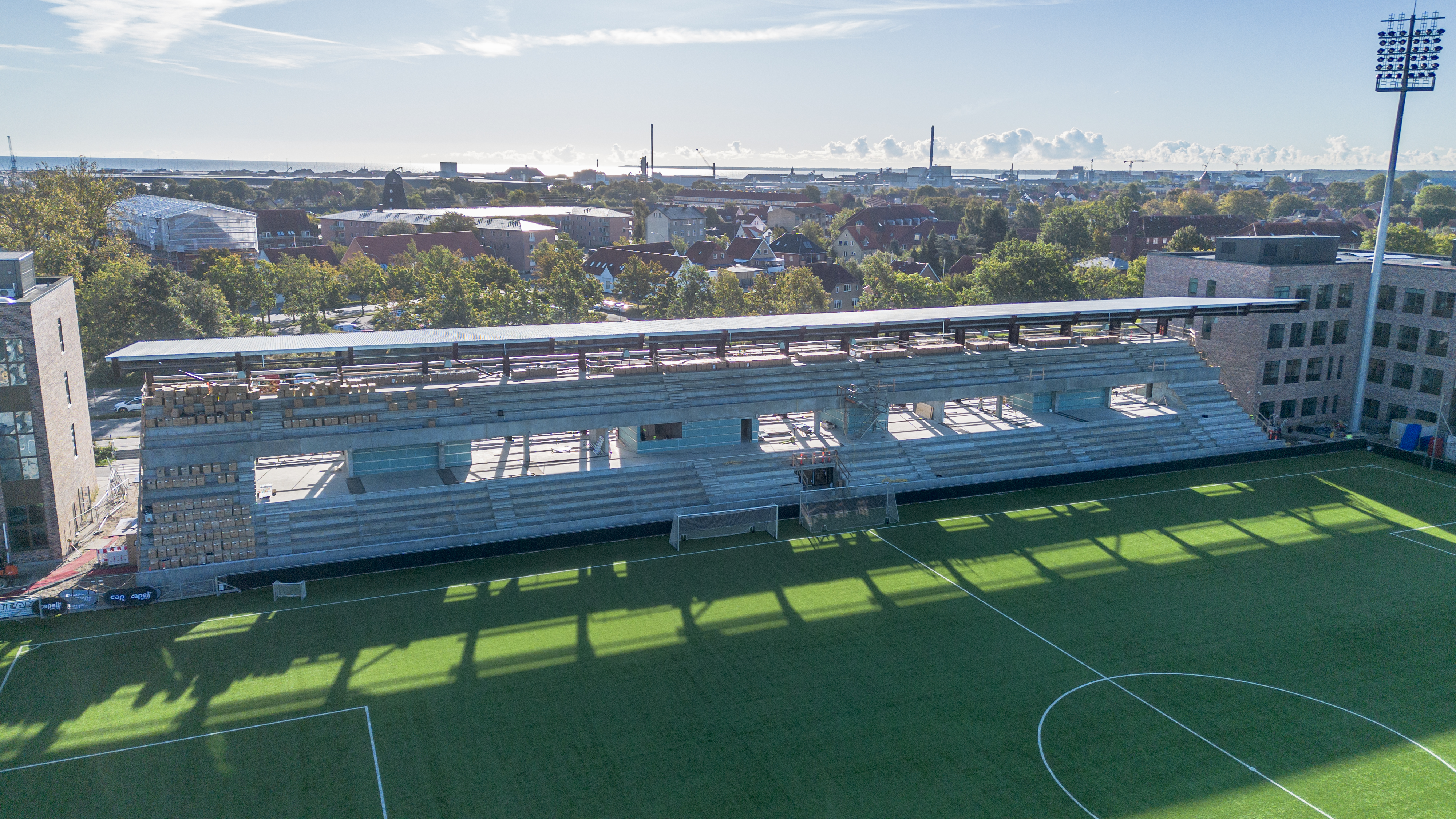 Tilskuerkapaciteten honoreres ved en udvidelse af eksisterende vesttribune samt etablering af ny nord-, syd- og østtribune. Under tribunerne indrettes der players lounge, omklædningsrum, træningsrum, fanzonefaciliteter, vaskeri, behandlerrum samt øvrige rum til presse, dommere, salgsboder, publikumstoiletter m.v.